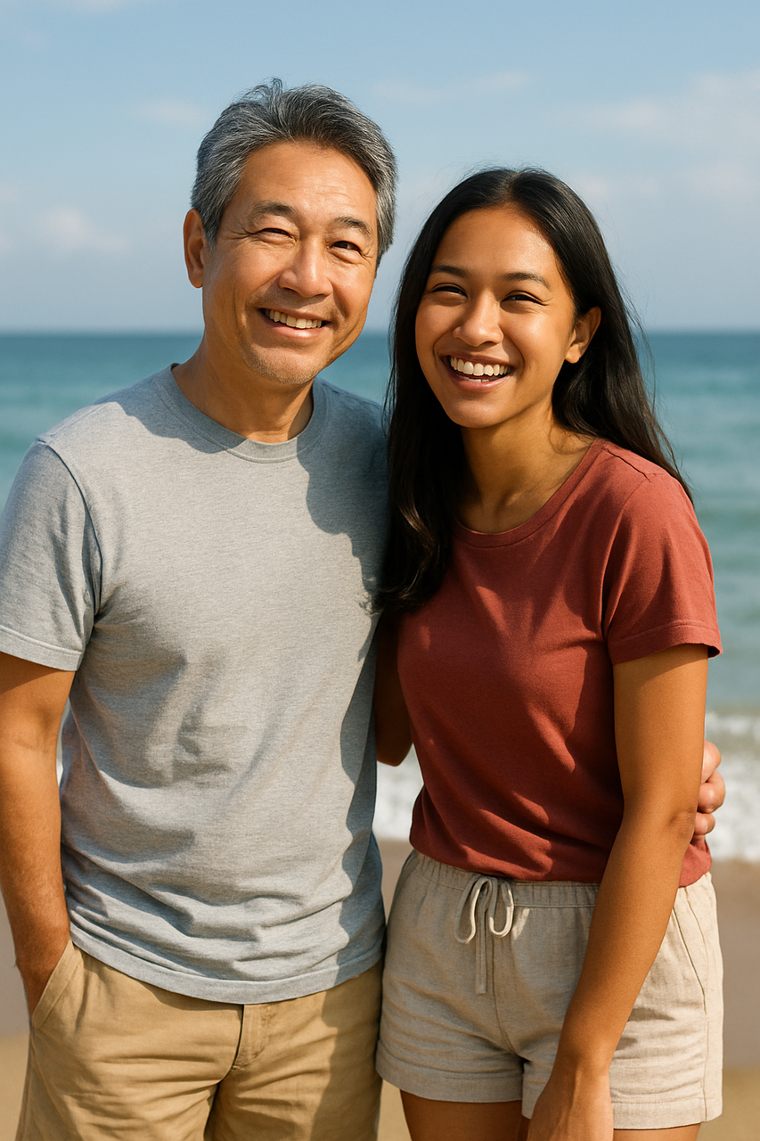 冒頭のイメージ画像をご覧ください。親子ほどの年齢差があると思われますが、とても自然で親密な関係を感じ取れると思います。写真は、継続した真摯な恋愛関係の末の結婚であることを裏付けるために重要な意味を持ちます。